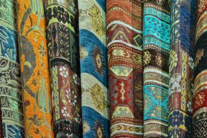 • Des motifs ethniques par ci par là comme sur du papier peint , un tapis, de la faïence, un coussin, un vase…